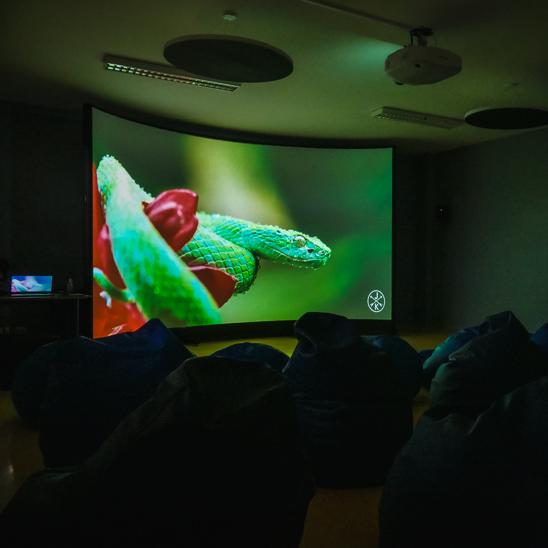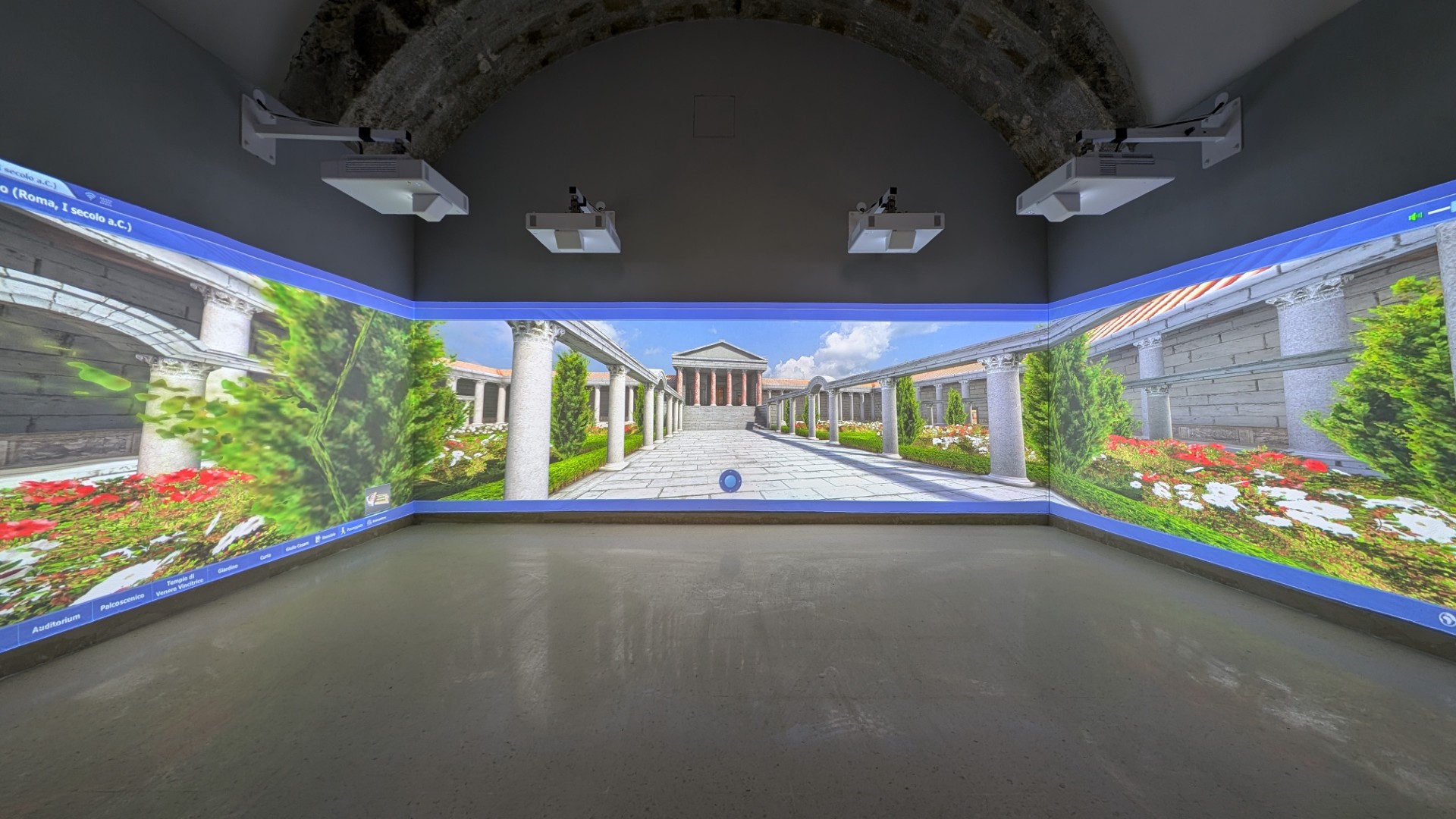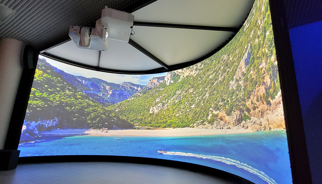 Il nostro prodotto immersivo più conosciuto: uno spazio di proiezione panoramica di oltre 6 metri di base che permette di insegnare entrando letteralmente nella materia.